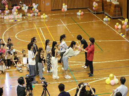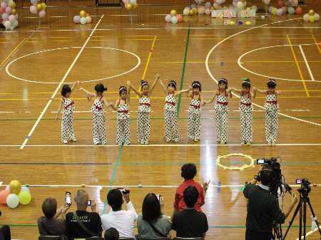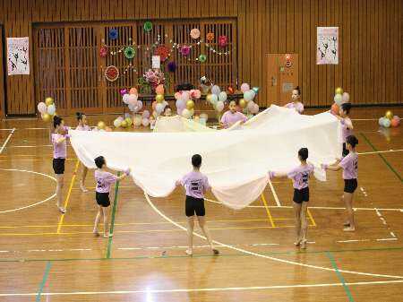 幼児から小学生までのクラブ員と、ちぐさ幼稚園新体操教室の園児が、多くの保護者の前で、身体やボール、リボン、クラブ、ロープ、フープの手具を用いて、素敵な表情で演技をしてくれました。園児や小学生の演技に、たくさんの参加者から大きな拍手を受けていました。大人が子どもたちから元気をいただきました。3連休の中での発表会でしたが、素晴らしい充実した一日となりました。