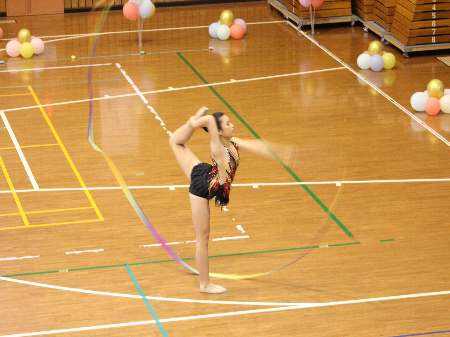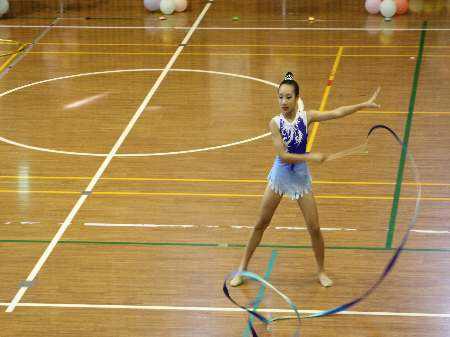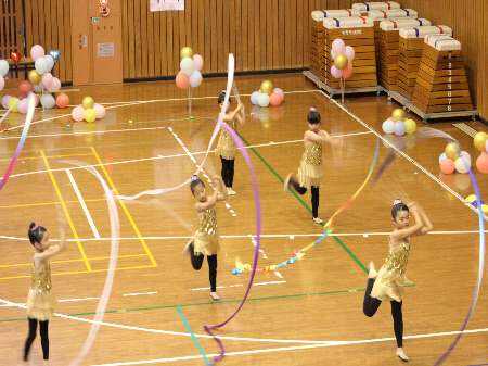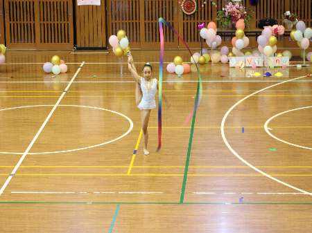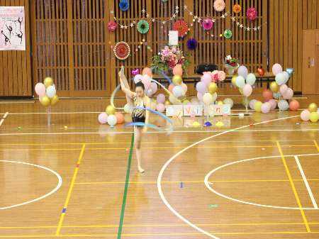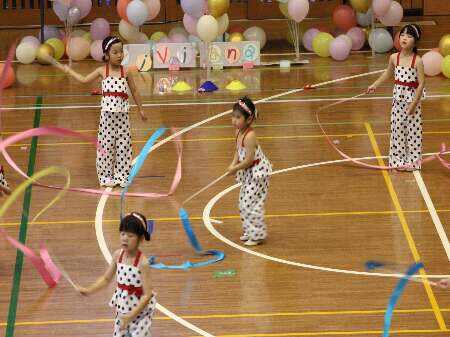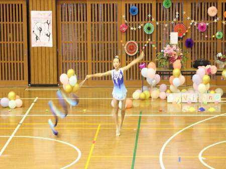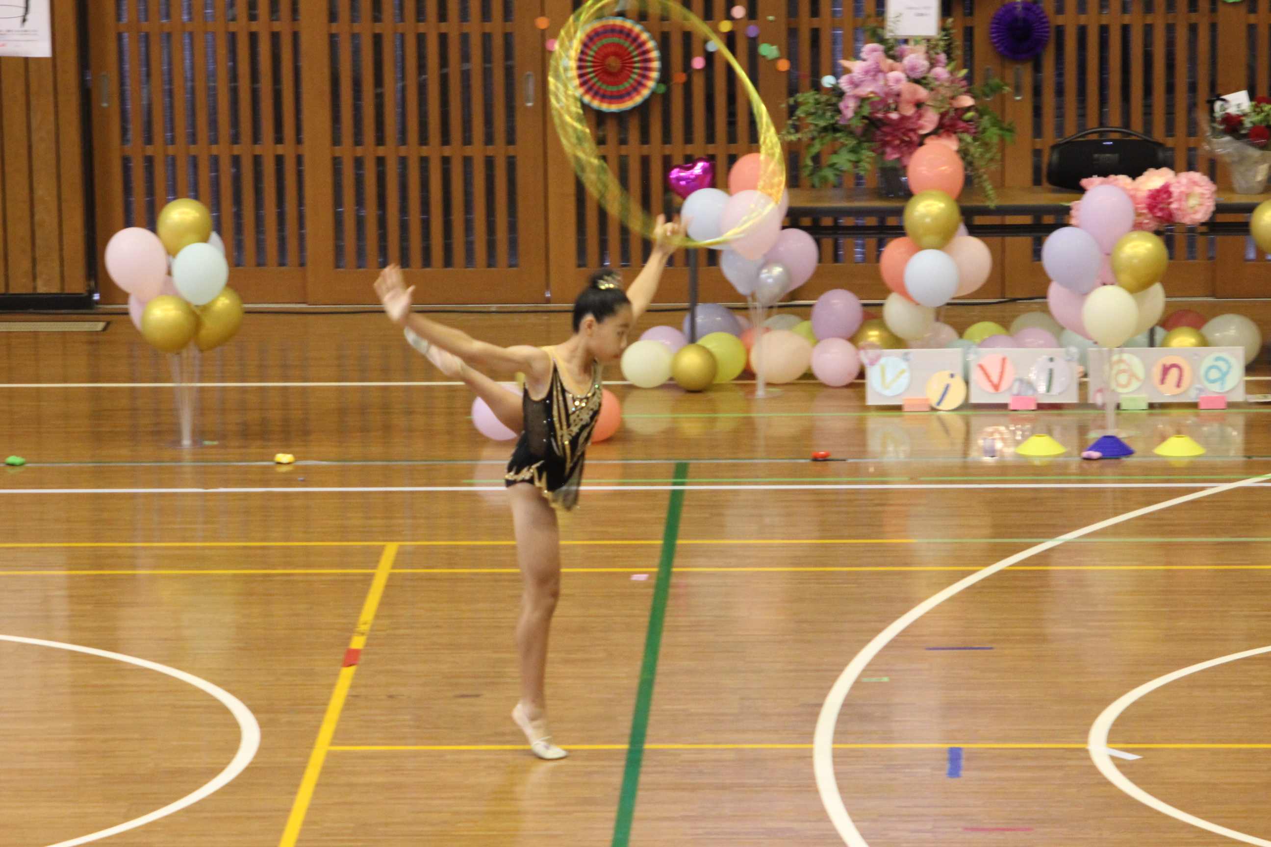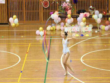 天候にも恵まれ、10月12日(日)新体操クラブ(Viviana RG)の発表会がみどりが丘学校体育館にて開催されました。クラブ員35による発表会で一人一人がすばらしい演技を披露してくれました。今回も、MEGUMI